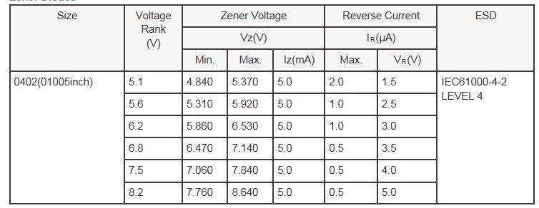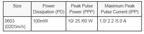 2. Equivalent key characteristics (i.e. VF) of 0603-size products in a compact package